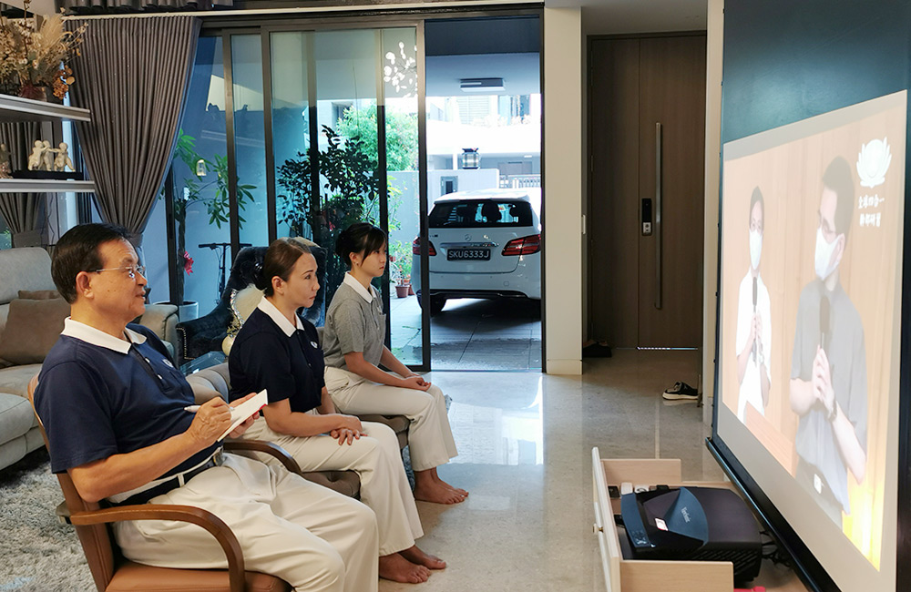 “2021年全球四合一干部精进研习营”透过云端如期进行,360多位新加坡志工纷纷打开电脑、手机或平板,按下链接上线报到,和全球两万多位慈济志工在线上以法相会。(摄影 / 陈三峇)